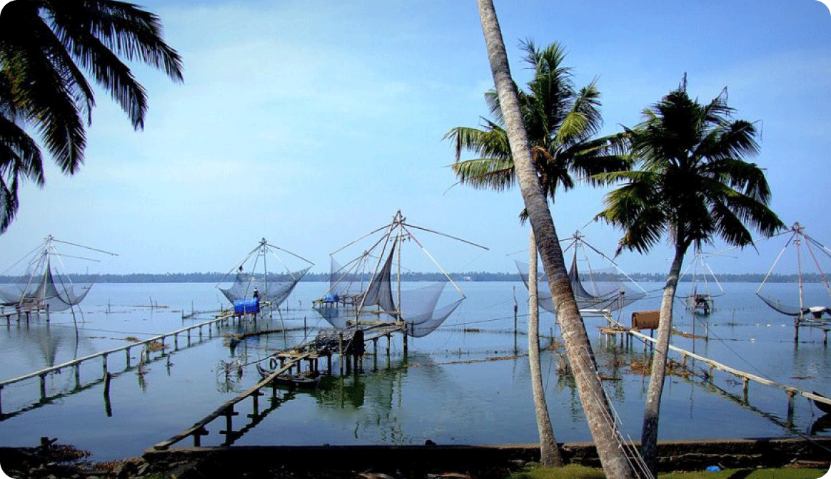 Chinese Fishing Nets are a common sight in the backwaters of Kerala. The water covered with these nets at the time of sunset makes a bewitching and pleasant scene to the travelers.